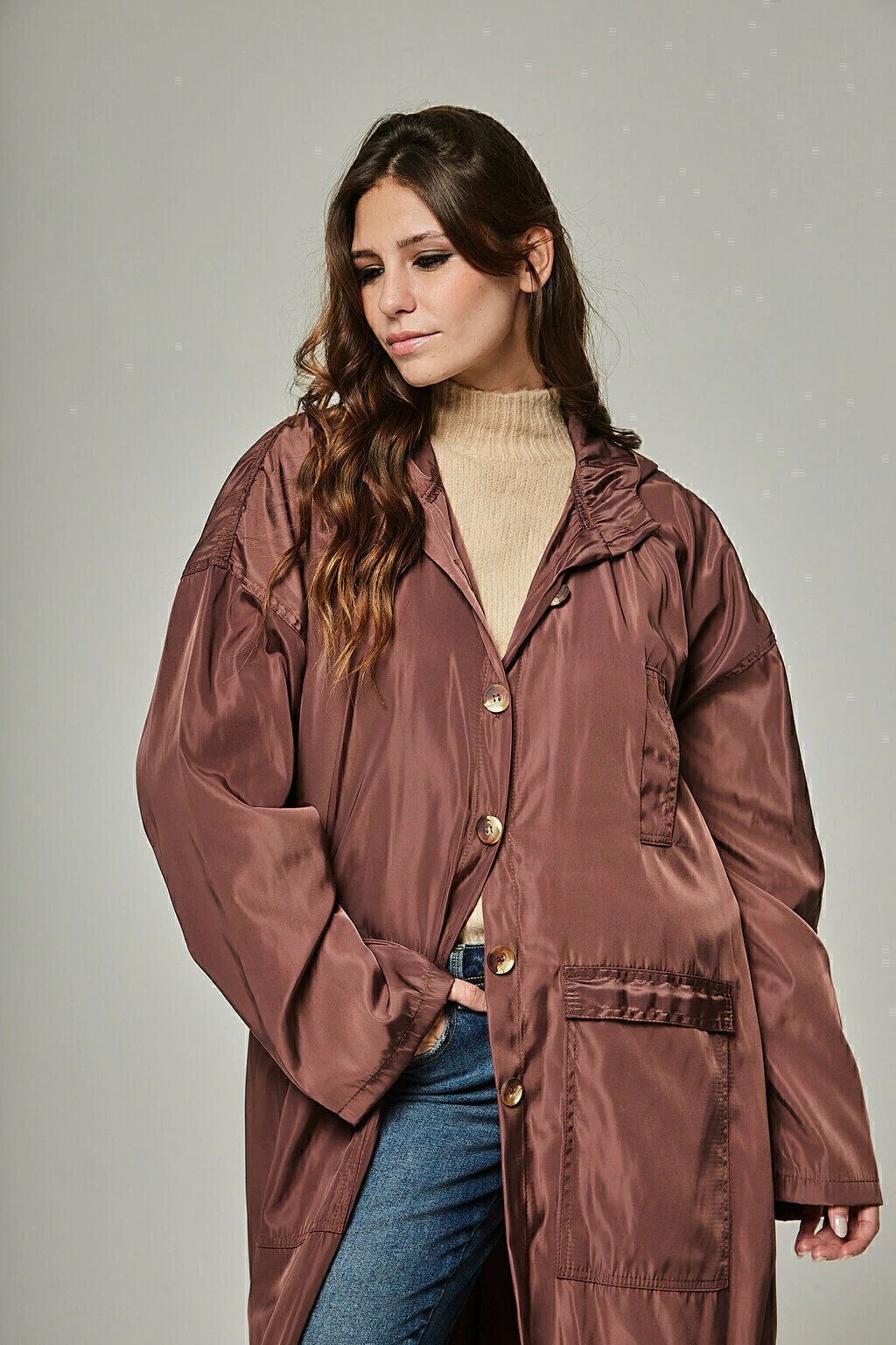 Piloto confeccionado en tela Viggo, tejido trench satinado.